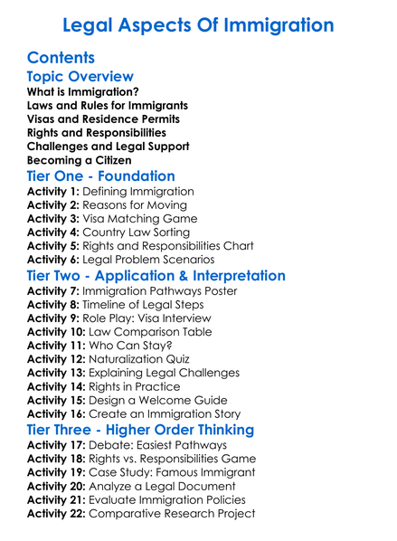 Legal Aspects Of Immigration Worksheet Activity Booklet