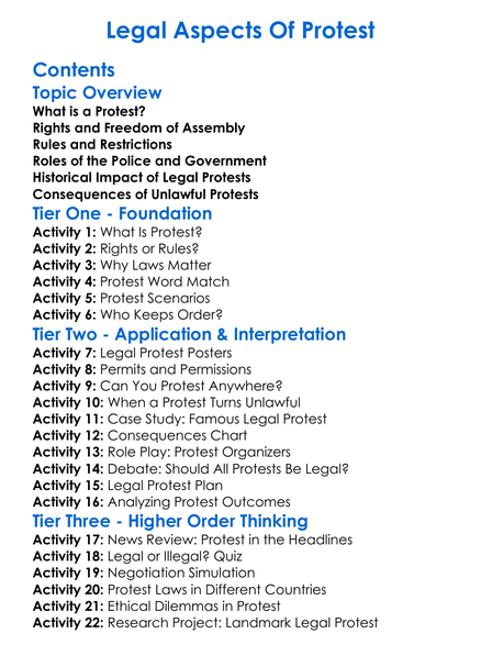 Legal Aspects Of Protest Worksheet Activity Booklet