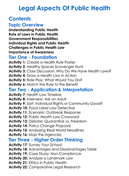 Legal Aspects Of Public Health Worksheet Activity Booklet