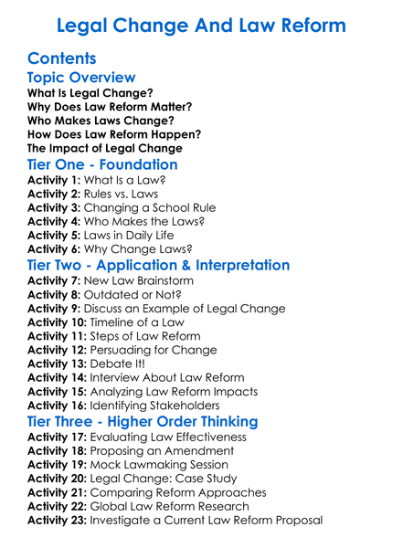 Legal Change And Law Reform Worksheet Activity Booklet