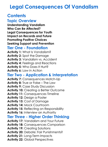 Legal Consequences Of Vandalism Worksheet Activity Booklet