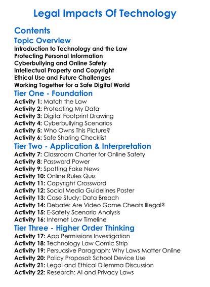 Legal Impacts Of Technology Worksheet Activity Booklet