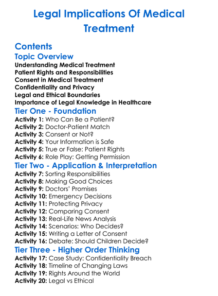 Legal Implications Of Medical Treatment Worksheet Activity Booklet