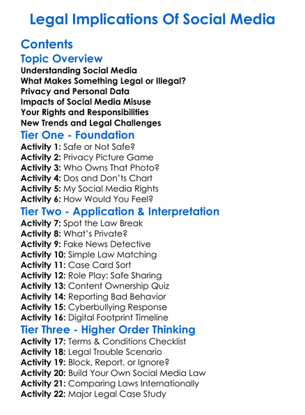 Legal Implications Of Social Media Worksheet Activity Booklet