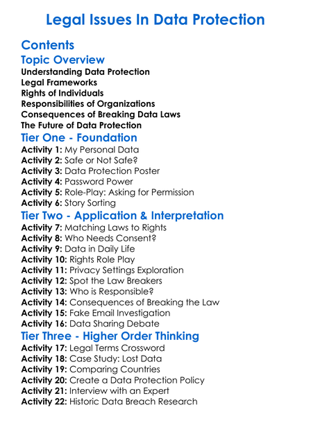Legal Issues In Data Protection Worksheet Activity Booklet
