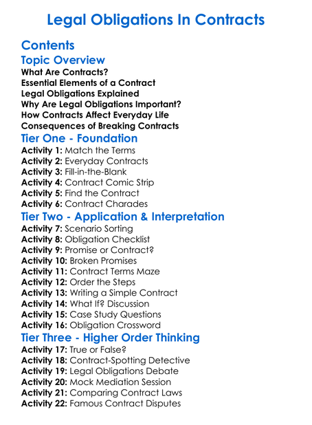 Legal Obligations In Contracts Worksheet Activity Booklet