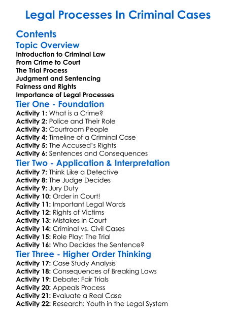 Legal Processes In Criminal Cases Worksheet Activity Booklet