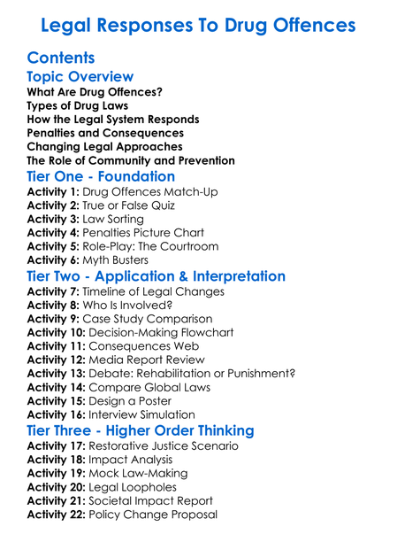 Legal Responses To Drug Offences Worksheet Activity Booklet