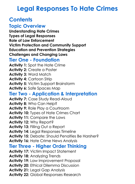 Legal Responses To Hate Crimes Worksheet Activity Booklet