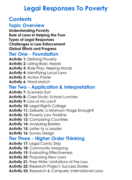 Legal Responses To Poverty Worksheet Activity Booklet