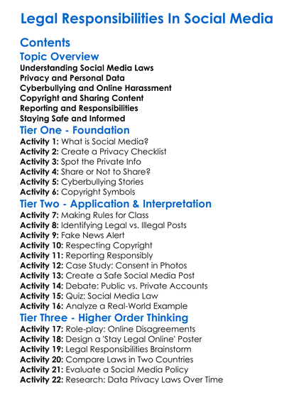 Legal Responsibilities In Social Media Worksheet Activity Booklet