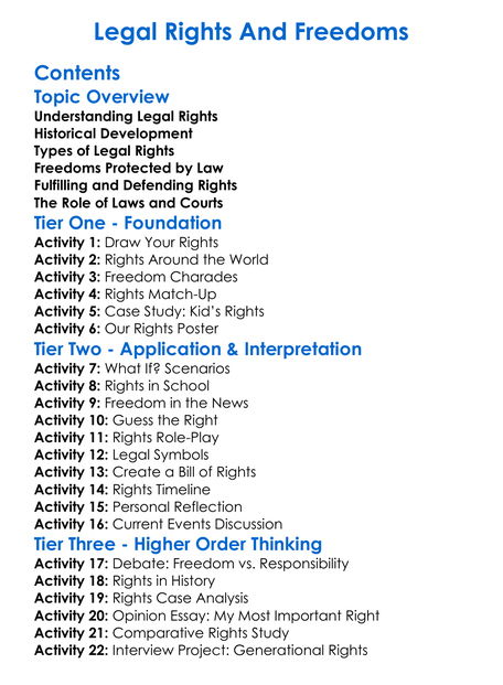 Legal Rights And Freedoms Worksheet Activity Booklet