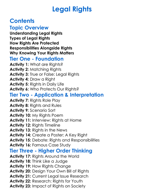 Legal Rights Worksheet Activity Booklet