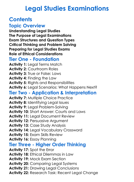 Legal Studies Examinations Worksheet Activity Booklet