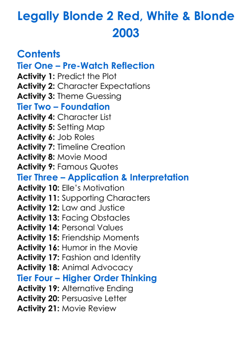 Legally Blonde 2 Red White Blonde 2003 Worksheet Activity Booklet