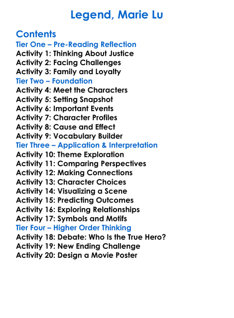 Legend Marie Lu Worksheet Activity Booklet
