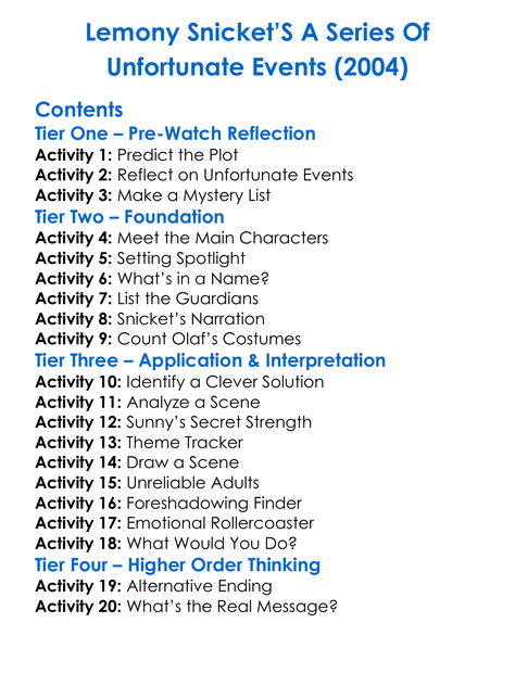 Lemony Snickets A Series Of Unfortunate Events 2004 Worksheet Activity Booklet