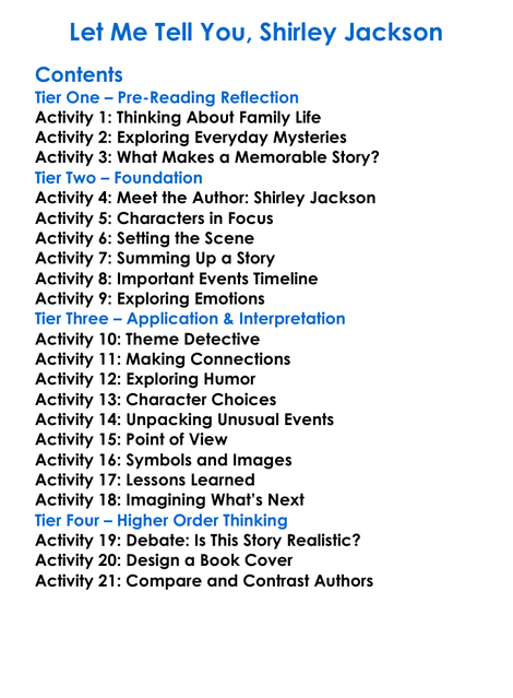Let Me Tell You Shirley Jackson Worksheet Activity Booklet