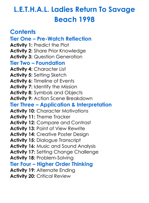 Lethal Ladies Return To Savage Beach 1998 Worksheet Activity Booklet
