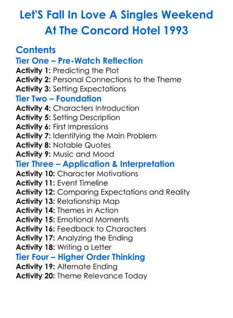Lets Fall In Love A Singles Weekend At The Concord Hotel 1993 Worksheet Activity Booklet