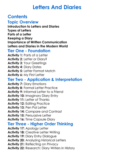 Letters And Diaries Worksheet Activity Booklet