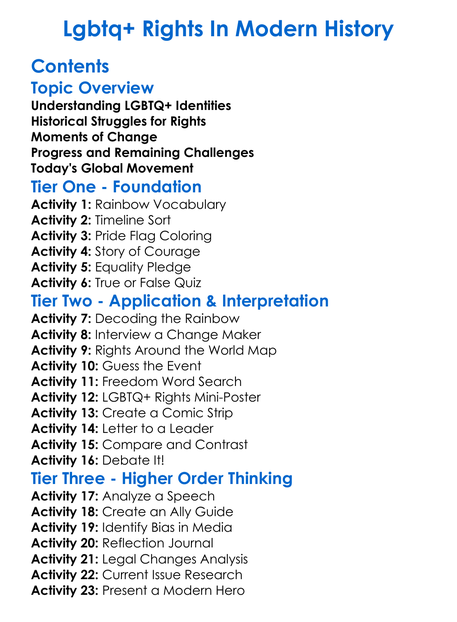 Lgbtq Rights In Modern History Worksheet Activity Booklet