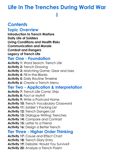 Life In The Trenches During World War I Worksheet Activity Booklet
