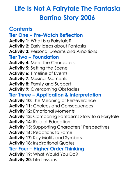 Life Is Not A Fairytale The Fantasia Barrino Story 2006 Worksheet Activity Booklet