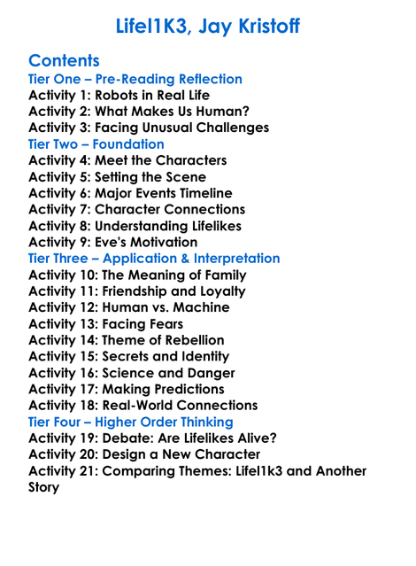 Lifel1K3 Jay Kristoff Worksheet Activity Booklet