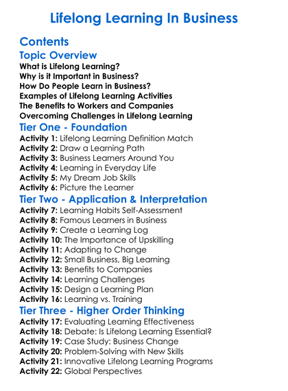 Lifelong Learning In Business Worksheet Activity Booklet