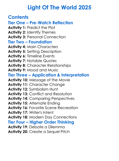 Light Of The World 2025 Worksheet Activity Booklet