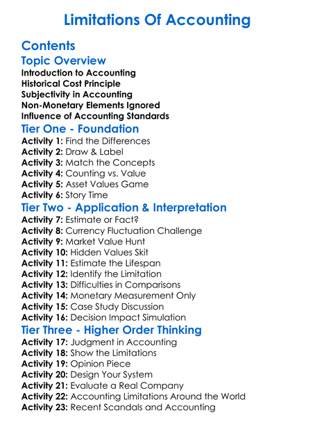 Limitations Of Accounting Worksheet Activity Booklet