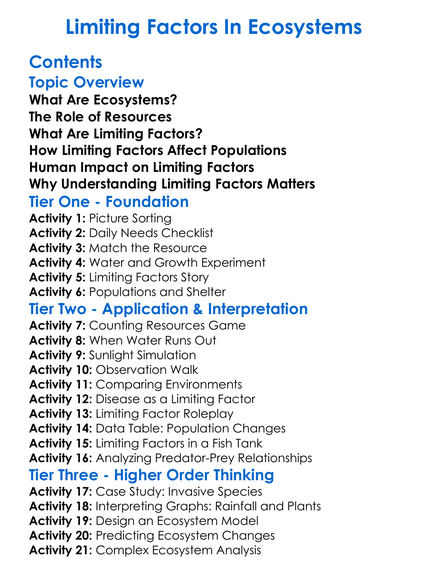 Limiting Factors In Ecosystems Worksheet Activity Booklet