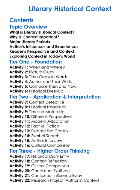 Literary Historical Context Worksheet Activity Booklet