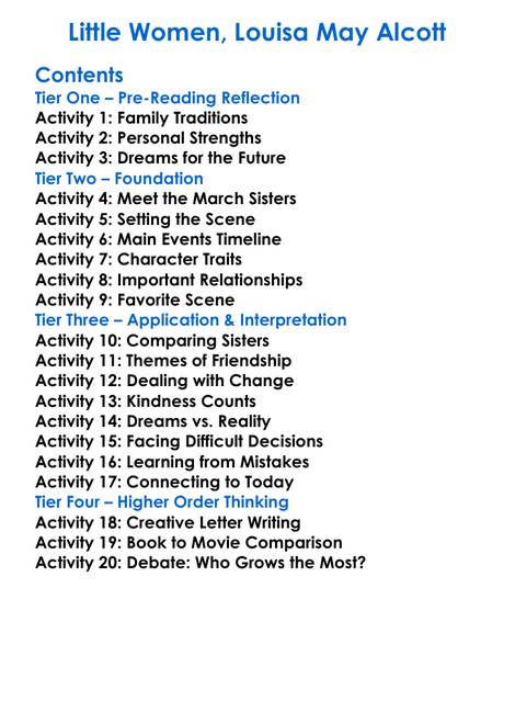 Little Women Louisa May Alcott Worksheet Activity Booklet