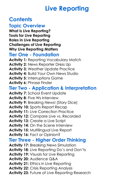Live Reporting Worksheet Activity Booklet
