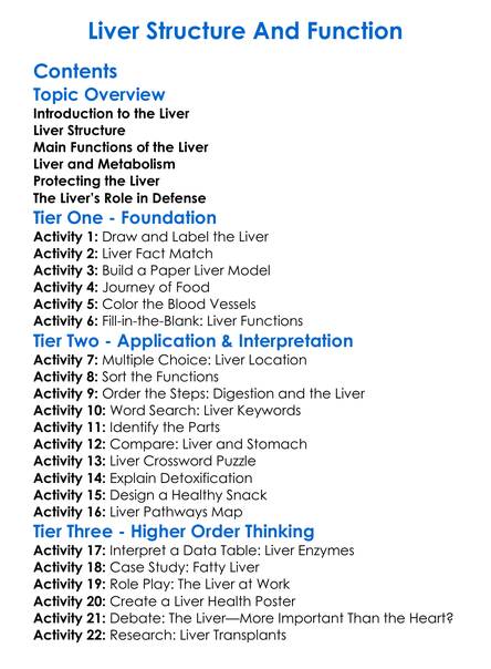 Liver Structure And Function Worksheet Activity Booklet