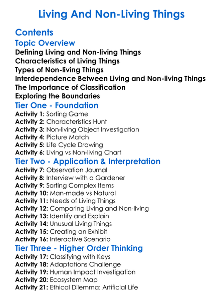 Living And Non-Living Things Worksheet Activity Booklet