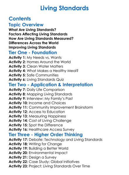 Living Standards Worksheet Activity Booklet