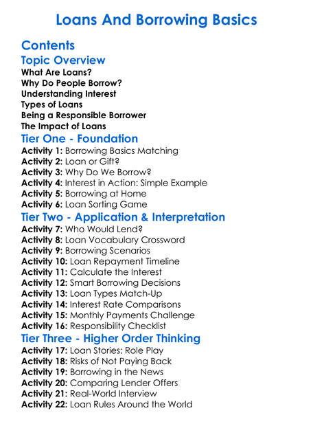 Loans And Borrowing Basics Worksheet Activity Booklet