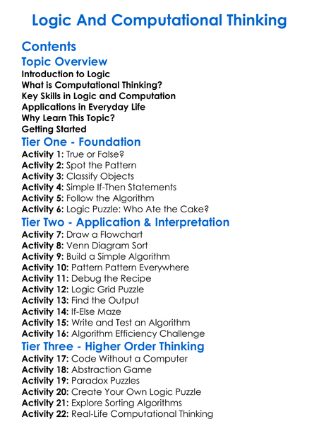 Logic And Computational Thinking Worksheet Activity Booklet