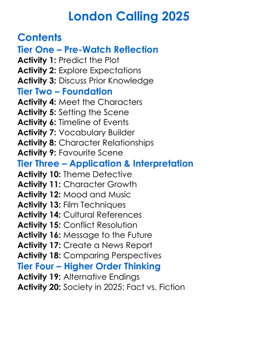 London Calling 2025 Worksheet Activity Booklet