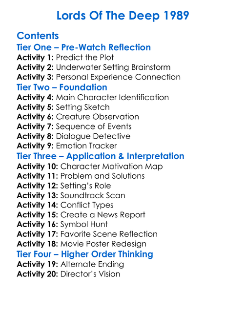 Lords Of The Deep 1989 Worksheet Activity Booklet