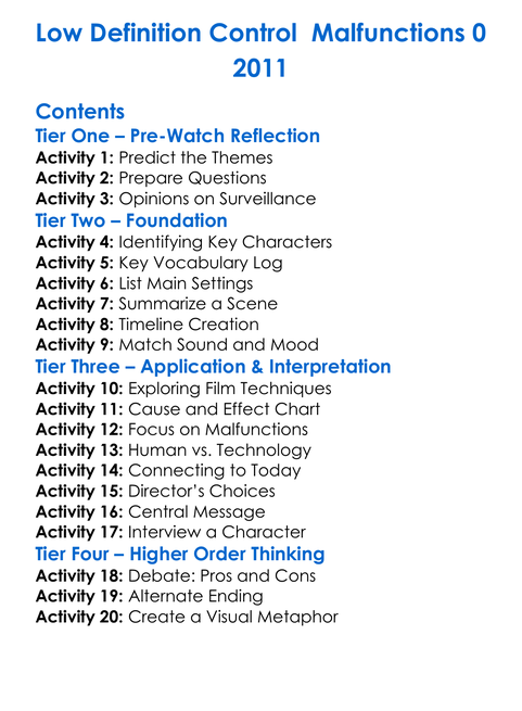 Low Definition Control Malfunctions 0 2011 Worksheet Activity Booklet