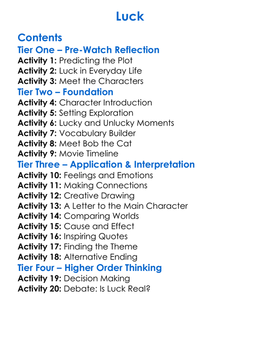 Luck Worksheet Activity Booklet