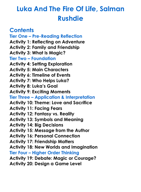 Luka And The Fire Of Life Salman Rushdie Worksheet Activity Booklet