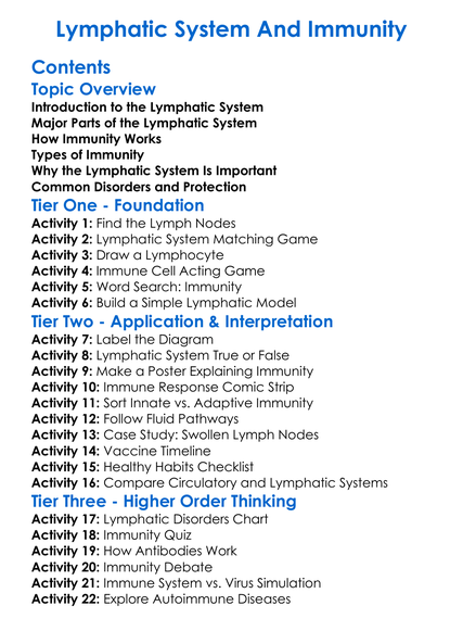 Lymphatic System And Immunity Worksheet Activity Booklet