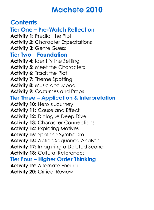 Machete 2010 Worksheet Activity Booklet