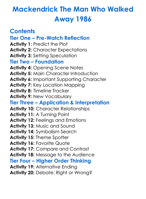 Mackendrick The Man Who Walked Away 1986 Worksheet Activity Booklet