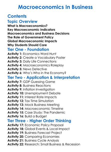Macroeconomics In Business Worksheet Activity Booklet
